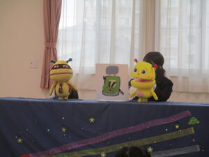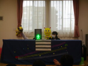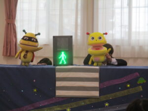 人形劇を見ながら、交通ルールを勉強しました‼️