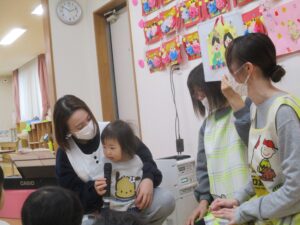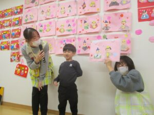 子ども達が作ったクラス毎の飾りを代表のお友達に紹介してもらいました😊💕